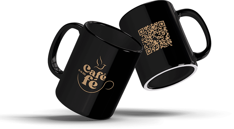 O Café com Fé é um produto inovador que combina inspiração e praticidade. Trata-se de uma caneca personalizada (de porcelana ou copo de acrílico com tampa) com um QR Code que dá acesso a devocionais em vídeo, disponibilizados diariamente às 5:00h.